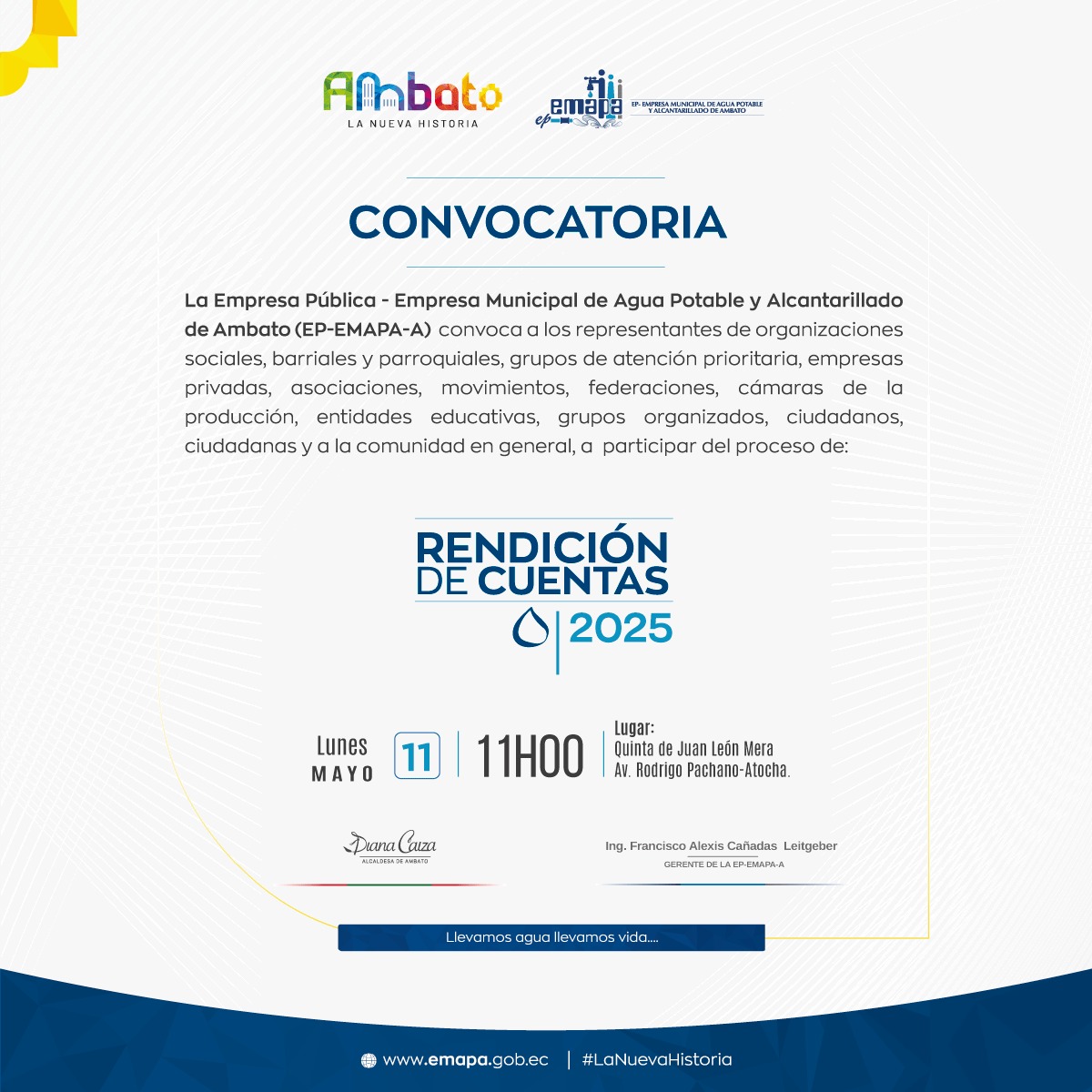 RENDICIÓN DE CUENTAS 2025 20 de abril de 2026 LECTURA DE MEDICIONES MES DE ABRIL 2026 6 de abril de 2026 CIERRE PARCIAL DE VÍA 6 de abril de 2026