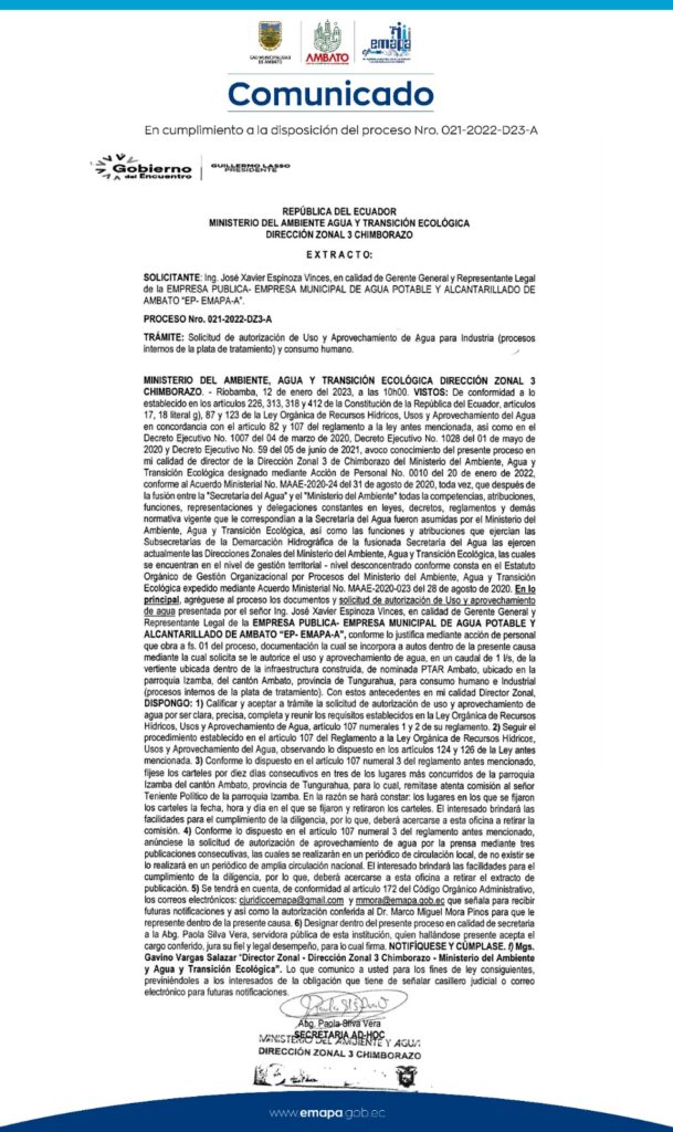 Reglamento Orgánico Funcional (ROF) de la Empresa Pública Empresa Municipal de Agua Potable y Alcantarillado de Ambato «EР-ЕМАРА-А»